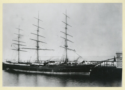 The composite ship 'Torrens', 1276 tons, in the new dock at Port Adelaide, Built 1875/ A.D. Edwardes Collection, State Library of South Australia
